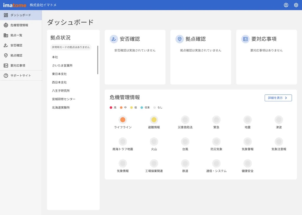 imatomeは、災害時の情報収集をおまかせできるオールインワン危機管理サービスです。