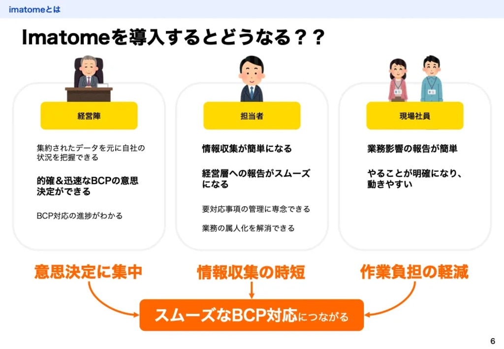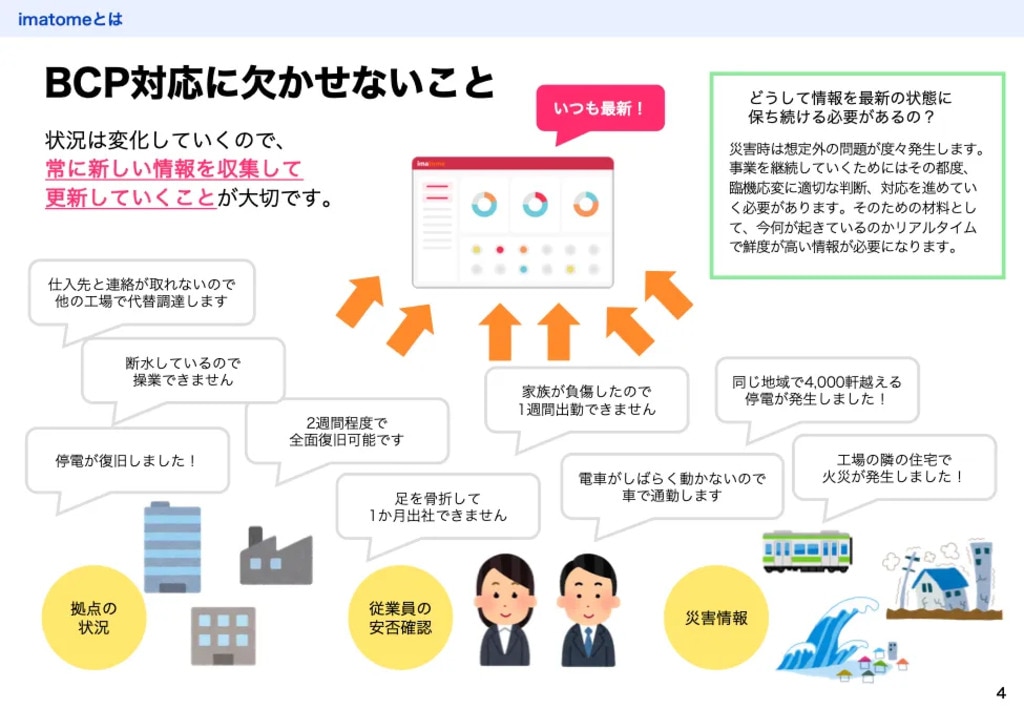 自社の最新の状況を知りたいのなら、BCPオートメーションサービス「imatome」がおすすめです!