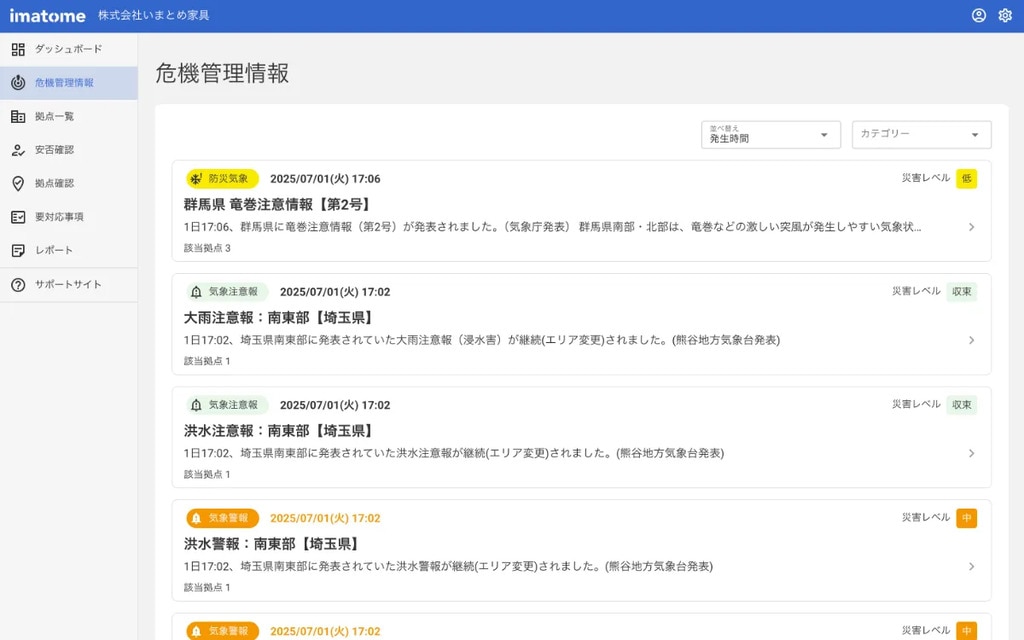 弊社が運営する危機管理情報センターで収集した情報をリアルタイムに提供しています。