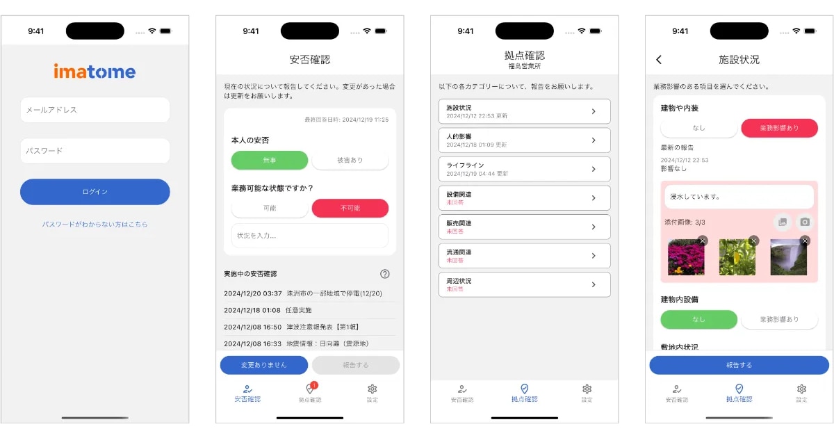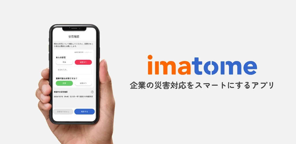 imatome公式アプリは、災害時の安否確認や拠点確認をスマートフォンひとつで簡単に行える便利なツールです。
